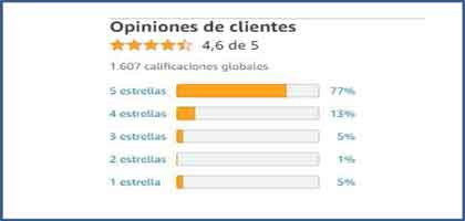 Con más de 1600 reseñas en Amazon a sus espaldas en estos dos últimos años, el porcentaje de clientes satisfechos ya nos lo dice todo: 90% de las reseñas la posicionan en 4 ó 5 estrellas. ¡Alucinante!